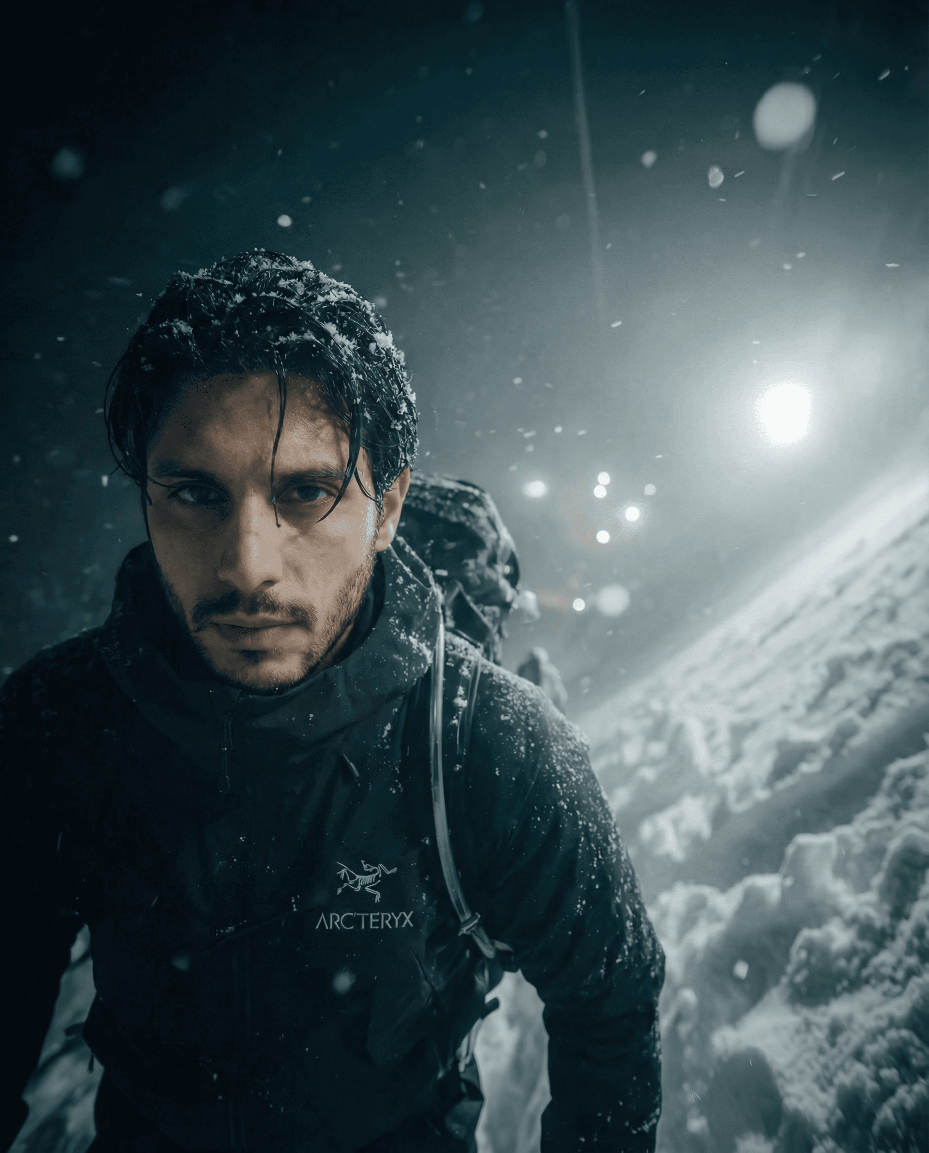 This project is a personal, non-commercial concept and was not created in collaboration with Arc’teryx. The brand and product were used purely as a visual reference to demonstrate the possibilities of AI-supported outdoor product photography.